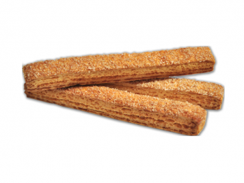 Изделия из слоеного сахарного теста в виде палочки длиной 13-14 см., имеет сливочный вкус, хрустящую слоеную структуру. Посыпана сахарным песком.