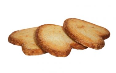 Состав: мука пшеничная хлебопекарная в/с, маргарин (рафинированные дезодорированные растительные масла, вода, соль, эмульгатор лецитин, лимонная кислота, краситель аннато – куркумин), сахар, соль. В 100 граммах продукта содержатся: белки - 6,9 г. ; жиры – 31,8 г. ; углеводы – 53,2 г. Энергетическая ценность – 497 ккал.