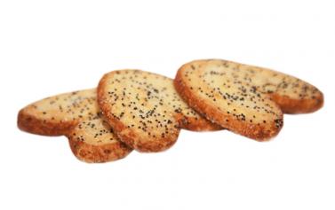 Состав: мука пшеничная хлебопекарная в/с, маргарин (рафинированные дезодорированные растительные масла, вода, соль, эмульгатор лецитин, лимонная кислота, краситель аннато – куркумин), сахар, мак, соль. В 100 граммах продукта содержатся: белки - 6,9 г. ; жиры – 31,8 г. ; углеводы – 53,2 г. Энергетическая ценность – 497 ккал.